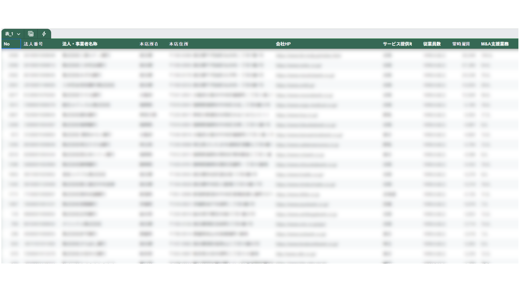 M&Aを検討されている経営者・担当者向けに、比較検討や初期スクリーニングに使いやすい表形式データでお届けします。